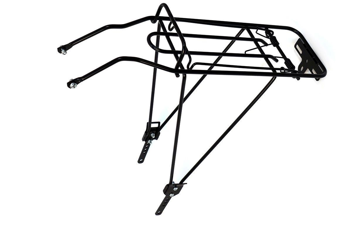 • Багажник стальной, эконом-вариант, универсальный, раздвижные ноги, с прижимом, черный