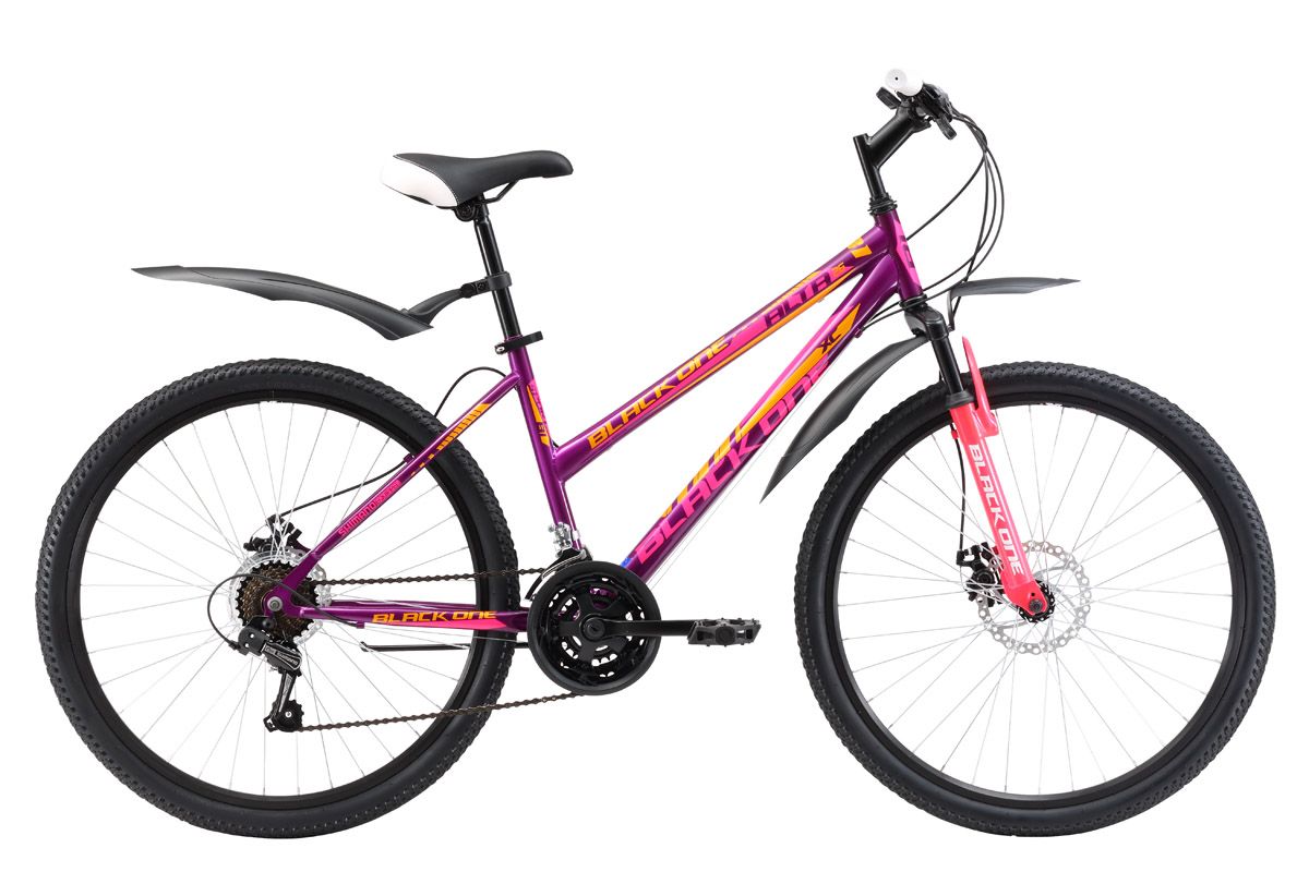 Женский горный велосипед Black One Alta 26 D, на стальной раме, оборудован механическим дисковым тормозом. Такой тип тормоза обеспечивает эффективное торможение на бездорожье, так как менее чувствителен к загрязнениям. 26 дюймовые колёса имеют двойные алюминиевые обода, которые более устойчивы к деформациям. Для крепления колеса в вилке применяются эксцентрики, с помощью которых снятие и установка колёс происходит быстро и легко. Женский горный велосипед имеет 21 передачу, которые выбираются с помощью курковых переключателей. Благодаря дисковым тормозам, надёжным крыльям и широким покрышкам Вы будете чувствовать себя уверенно во время велопрогулок на природе.